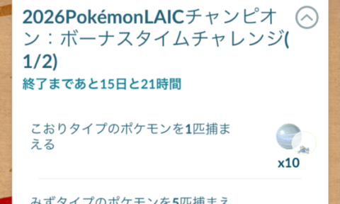 【ポケモンGO】「2026ポケモンLAICチャンピオン:ボーナスタイムチャレンジ」タスク内容、リワード│Twitch公式放送30分以上視聴でジュゴンやすごいわざマシンスペシャルを受け取れる無料タイムチャレンジ配布!