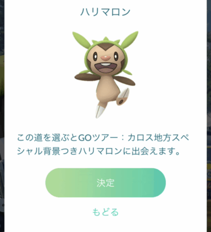 このタイムチャレンジをクリアすることで、GOツアーカロス地方のスペシャル背景がついたハリマロン、フォッコ、ケロマツのいずれかを入手することができます。