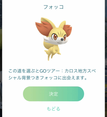 この道を選ぶとGOツアー:カロス地方スペシャル背景付きフォッコに出会えます。 |