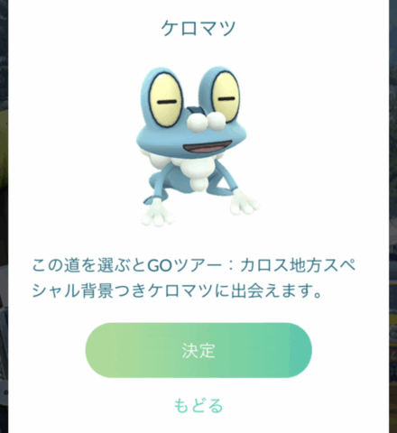 この道を選ぶとGOツアー:カロス地方スペシャル背景付きケロマツに出会えます。 |