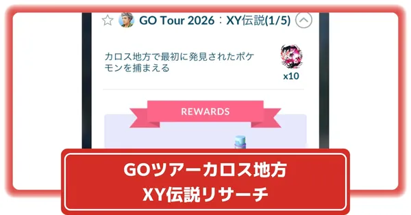 「GOツアー2026:XY伝説」タスク内容、リワード│ゼルネアスかイベルタルの選択肢がある「GOツアーカロス地方:グローバル」有料スペシャルリサーチ