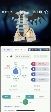 レベルと時期的にORASのギラティナと思います。個体値