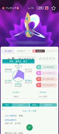 Da産のs0色クレセリアモンボ入りか配布色レヒレ出せますよ